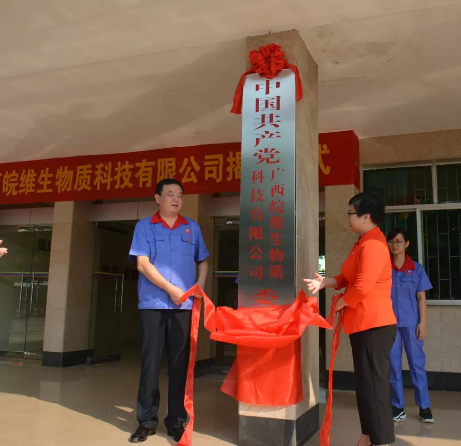 在熱烈的掌聲中,吳福勝、翟紅玲、梁寧、孫先武、袁大兵共同為“中國共產(chǎn)黨廣西皖維生物質(zhì)科技有限公司委員會”“廣西皖維生物質(zhì)科技有限公司” 揭,全體參加儀式的導(dǎo)和嘉賓見證了這歷史性時刻。