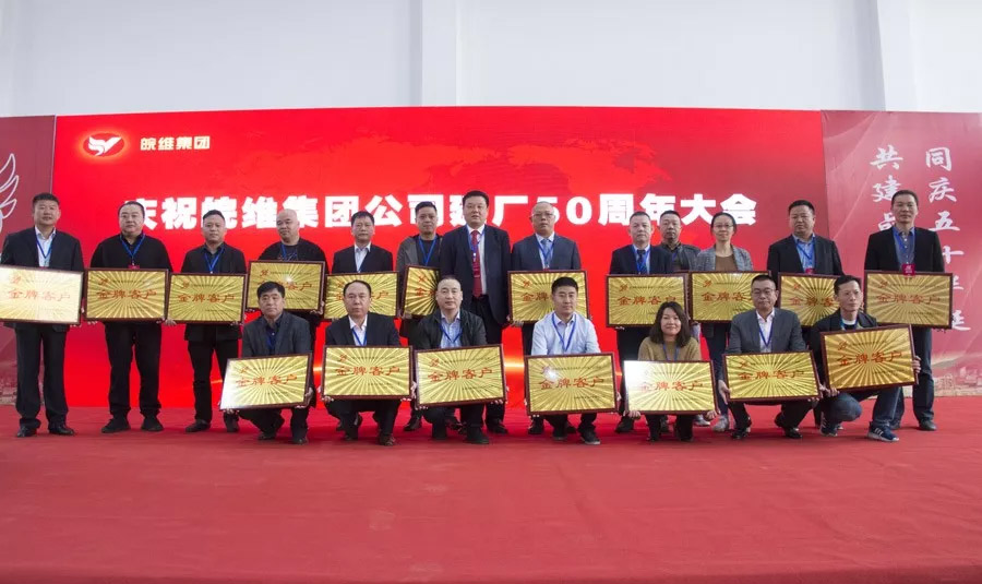 慶祝大會(huì)上,集團(tuán)公司黨委書記、董事長吳福勝向福建福維股份有限公司、上海潤蓬貿(mào)易有限公司等20家客戶現(xiàn)場頒發(fā)了“金客戶”榮譽(yù)匾。